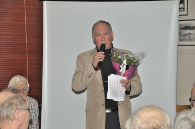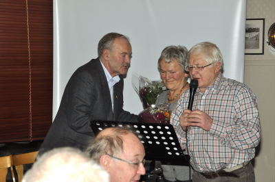 Sigfús fikk blomster. Herbjørn Alstad fikk blomster for 20 års innsats i Årbokkomitéen,