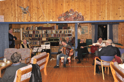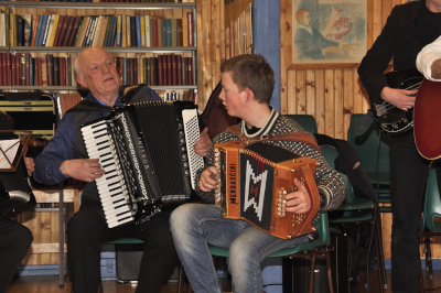 Det var god stemning i Valbergstua 23. mars, da Nappstraumen spelmannslag framførte en del melodier.
