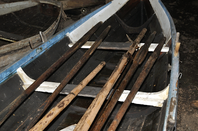 Flott utsikt mot Sennesvik.                                         Samlingen av verktøy og redskaper i brygga.