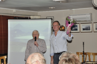 Det ble tatt en pause i forhandlingene hvor Sigfús Kristmannsson viste bilder fra Island og fortalte om turmuligheter der. Det ble også vist bilder fra lagets tur til Island 2.-9. juli -13. Nydelige bilder og god orientering gav nok flere lyst på en tur til Sagaøya! Sigfús ble takket med gode ord og blomster.