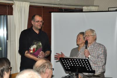 Sigfús fikk blomster. Herbjørn Alstad fikk blomster for 20 års innsats i Årbokkomitéen,