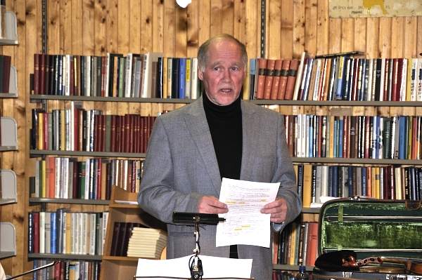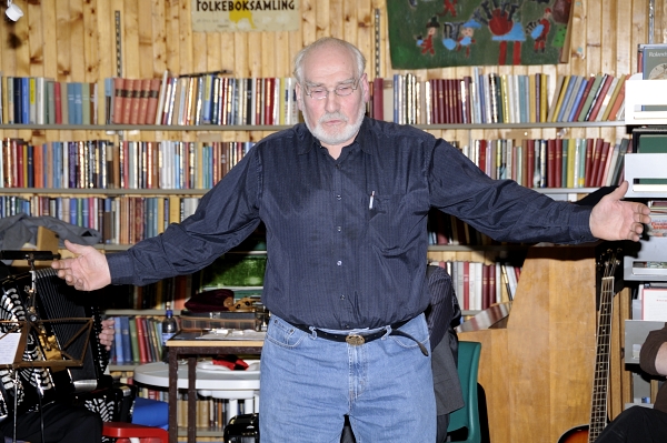 Leder i Vestvågøy Historielag, Kolbjørn Bugge, ønsket velkommen til en reise gjennom folkemusikken på Vestvågøy.