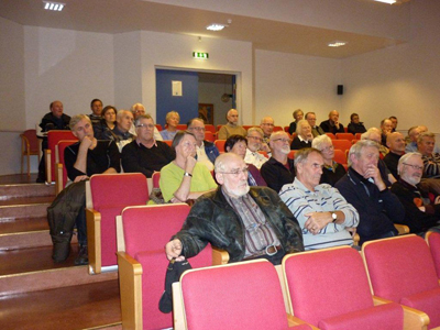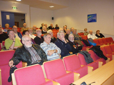 Etter foredraget svarte Gunnar Ingolf greit på spørsmål fra salen. Stor applaus etterpå! Formann Bugge takket han for en utrolig interessant innføring i vår fortid. Han gav ham en DVD laget av organist A.Pirozhkov – fotos fra Lofoten og med egen musikk. ” Når heimlengselen blir for stor, kan du sette den på” sa Kolbjørn, ” og så får du et av Historielagets krus til å ha på kontorbordet til kaffe, som et daglig minne”