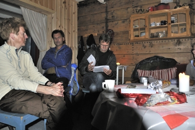 Innerst i dalen finner vi et fint og rødmalt hus som er renovert og står og minner om en tid da det var god aktivitet og fast beboelse der.. Nå er det fritidshus, og gjestfriheten til huseierne gjorde at vi fikk komme inn for å nyte vår kaffe i trivelig og historiske omgivelser. Her fikk Terje gi oss flere detaljer om dalens  historie - en gjennomført god oppdatering  fra en svunnet tid, der folk enda så mulighetene for å ha et sted å bo og et utkomme ,selv om det nok kunne være slitsom og knagert til tider.